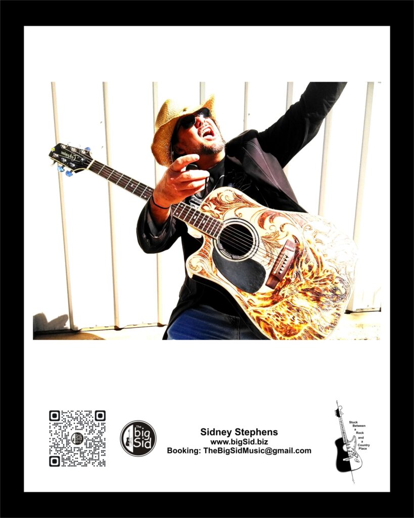 Original songwriter and recording artist, Sidney Stephens (The Big sid) is best described as a fusion of decades of curated Country, Rock, and Folk (Americana). Showcasing a dynamic, melodic voice and captivating lyrics. Paired with his guitar playing, he’s unparalleled with technique and tone.